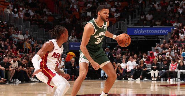 北京时间10月7日,2025-26赛季NBA季前赛,密尔沃基雄鹿103-93迈阿密热火。