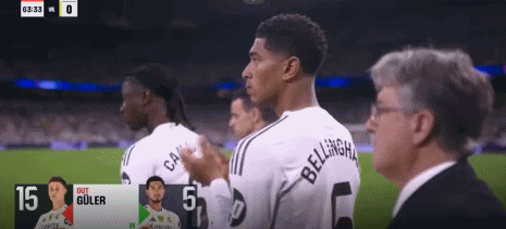 第64分钟,皇马换人,贝林厄姆和卡马文加替补登场