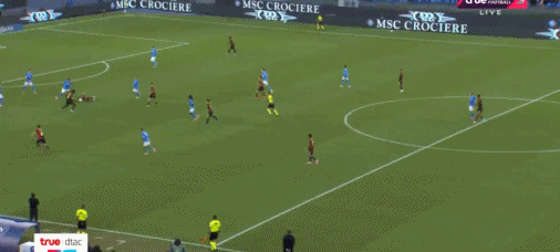 第33分钟,库菲人球分过后传中,埃哈托尔脚后跟巧射破门,热那亚1-0那不勒斯